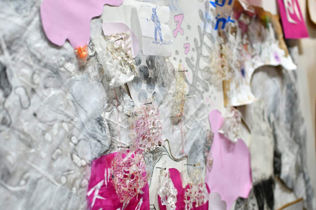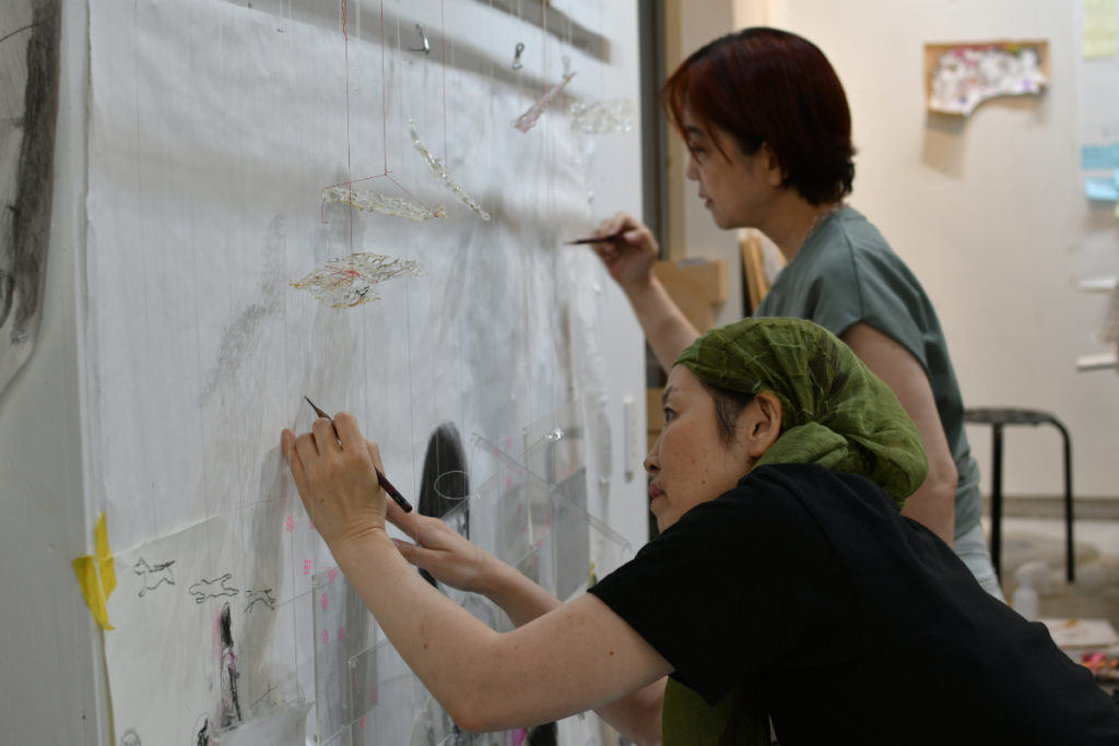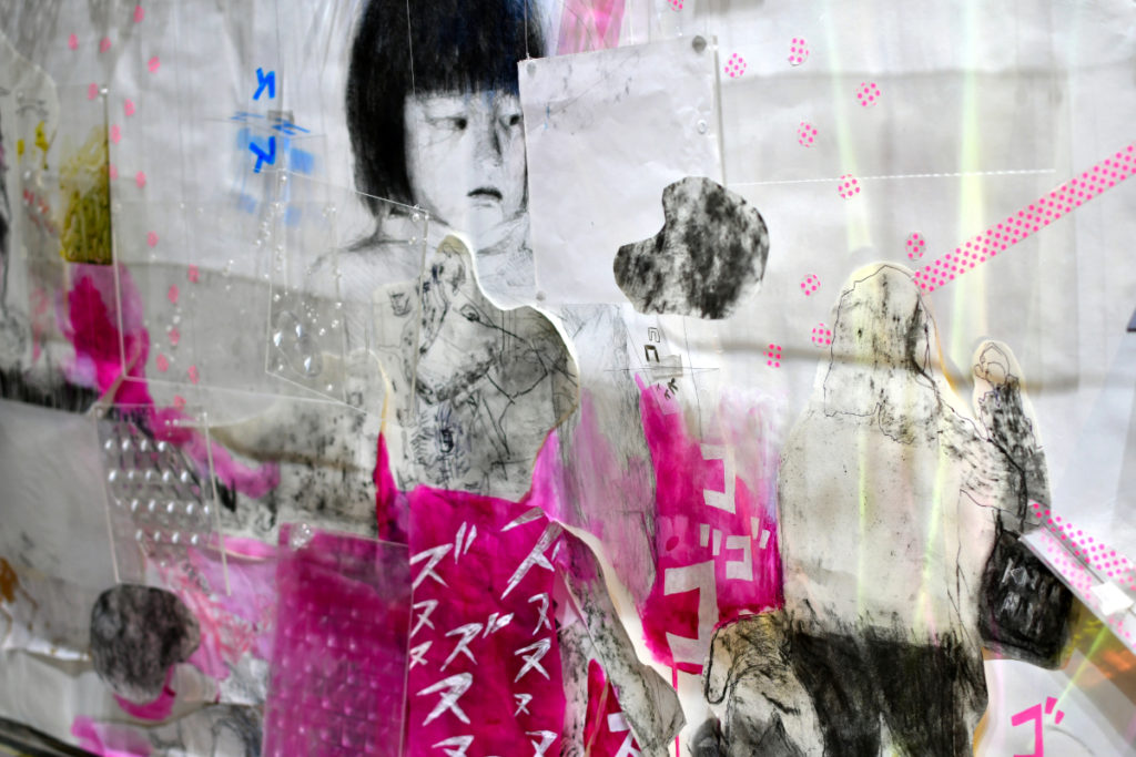 ドローイングとアクリル板による光と影の表現、