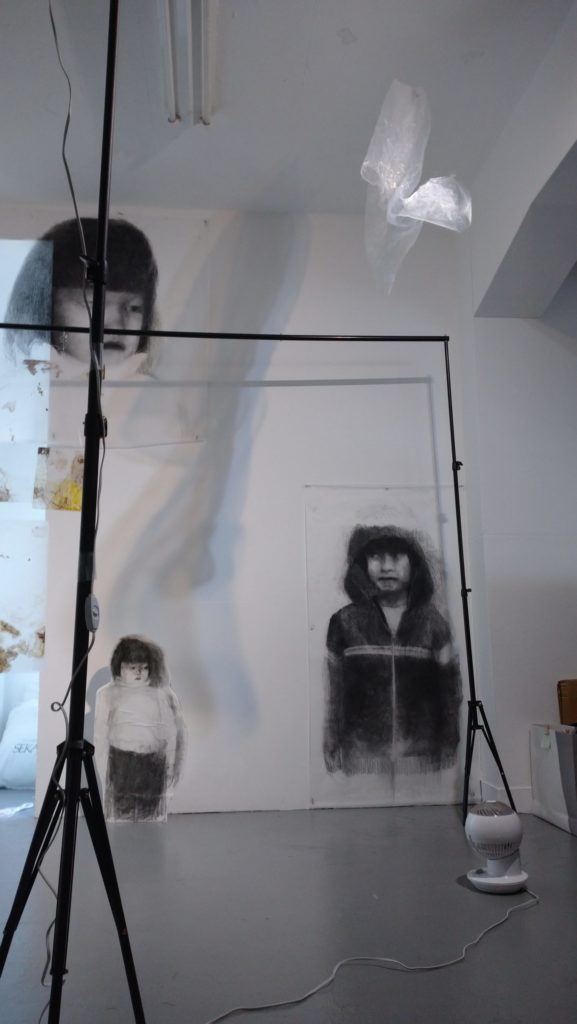 ジャンボミチとちっちゃいミチ_prototypeby kazikaeruに bigmichi、mixed-media installationon 投稿日: 2025年9月20日2026年3月10日Year:2025media:Installation(ドローイング、布、サーキュレーター)Size:W2,000×D3,000×H2,700