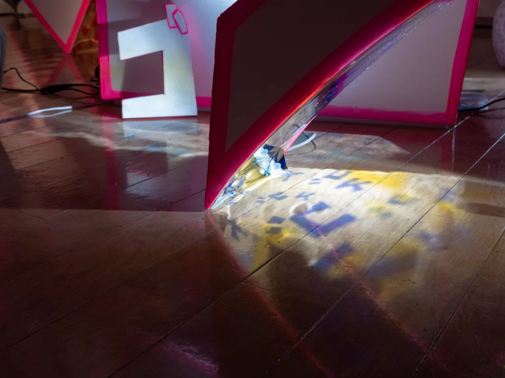 多摩川グラフィティを再構築し、境界をテーマに制作したインスタレーション。