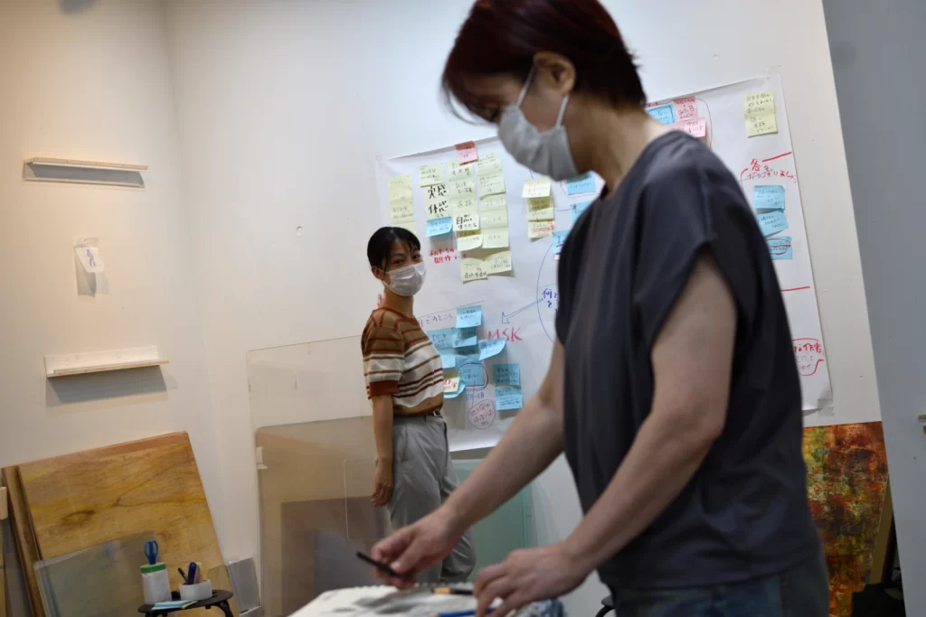 コレクティブの目的:自身の作品の新たな展開を求めて、異なる思考の二人のアーティストを配置した。