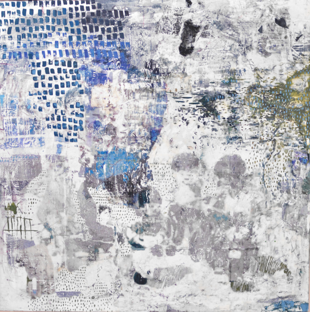 パネルに蜜蝋、オイルパステル、転写(2025、1000*1000)「あの頃はみんなスーパーマンになりたかった」