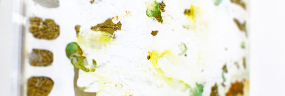 この作品は、前作「浜辺のケチャップ瓶」の発展を探る過程で制作されました。前作と同様に、スクラッチ技法を多用していますが、今回はアクリル板の表面をサンドペーパーで荒らし、反射や透明度を抑える試みも加えています。 Size: …