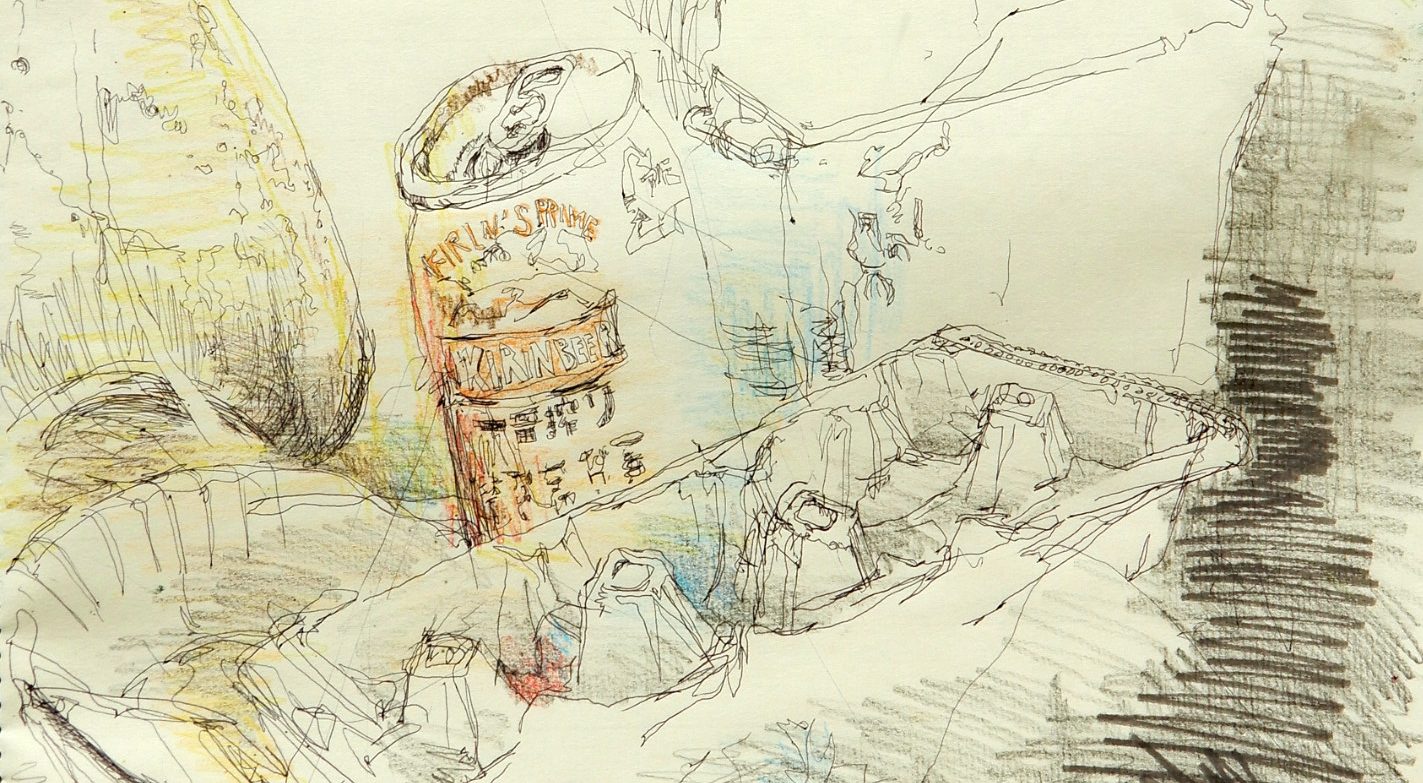 Ballpoint pen, colored pencils on paper